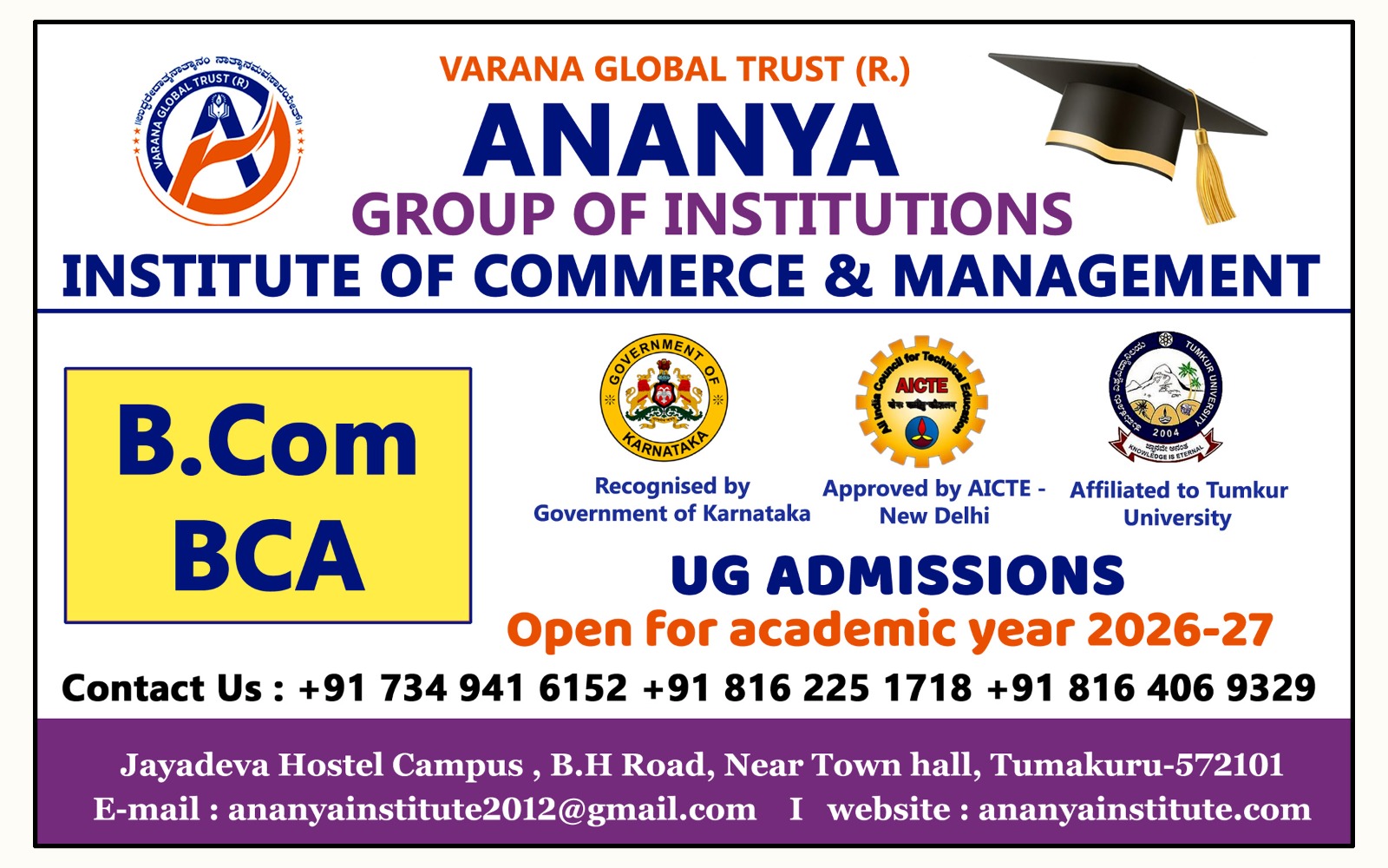 Yeshas Academy Bengaluru, a renowned professional trainer for CA, CS, and CMA, has partnered with Ananya Tumkuru to offer high-quality education at reasonable costs in Tumkur, enabling Tumurians and those residing in the surrounding area to pursue competitive courses in Tumkur exclusively in addition to degree programs